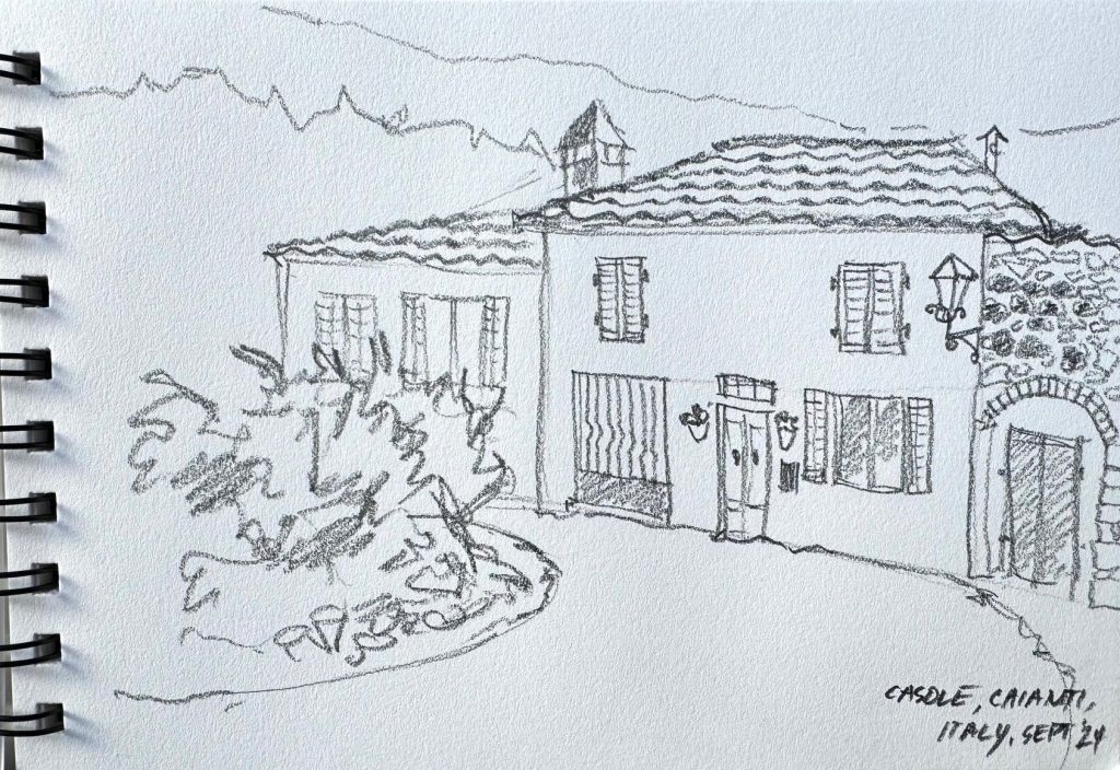 It’s not only what you see and record on paper when sketching. It’s what you feel, smell, touch and hear that also leaves an impression of the place. Sketching is a window that intensifies awareness. Senses come alive when you slow long enough to create the space. Tuscany and Chianti Italy had a way of doing that.
