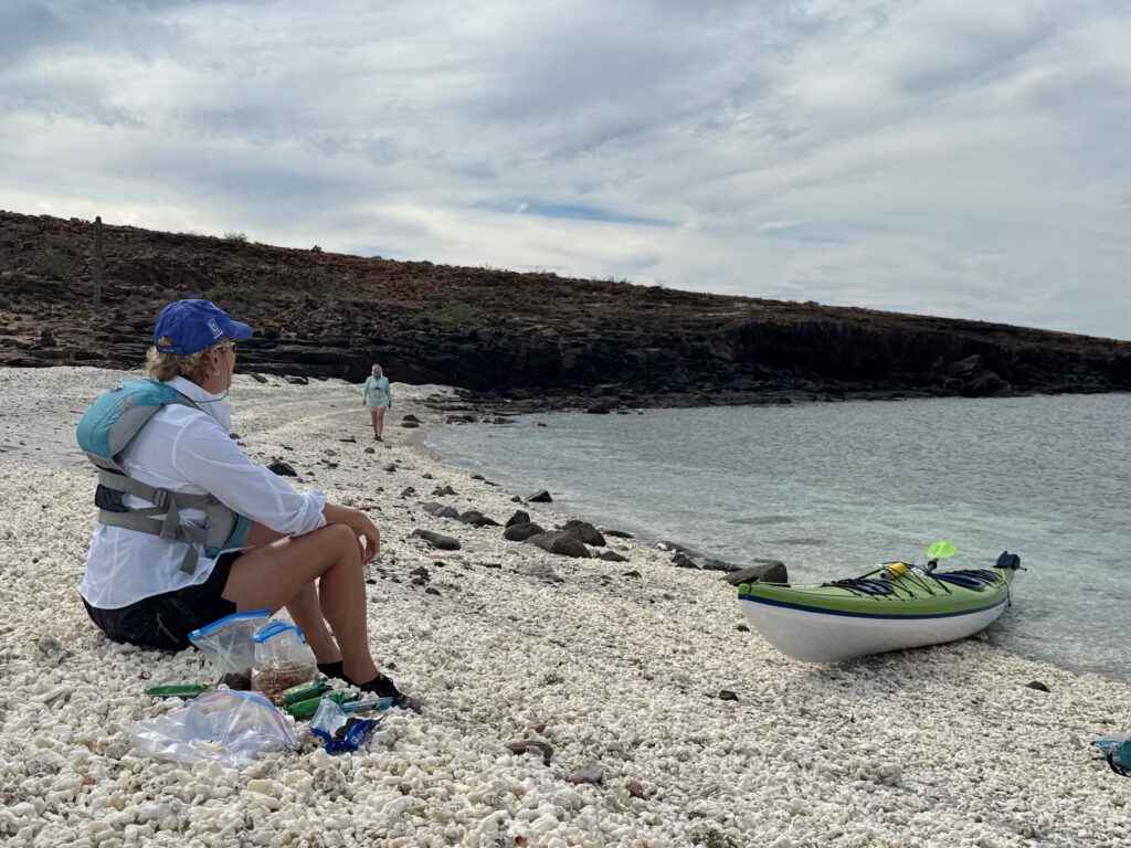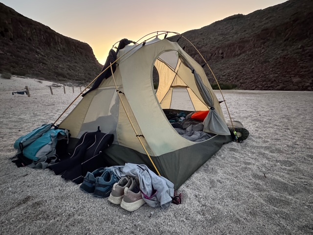 Camping on Espirto Santo Island requires a permit, which our guides had arranged. Permits prohibit campers from staying longer than two nights at any location. There also seems an unwritten rule that if a beach is being used by a group, that others will not set up camp overnight. This seems to work well along with the restricted permit process, largely acquired through guiding companies. You might see some use of beaches by day tours from La Paz, or accessed by anchored yachts coming ashore, but the permit system certainly limited human impact on Espirto Santo Island.