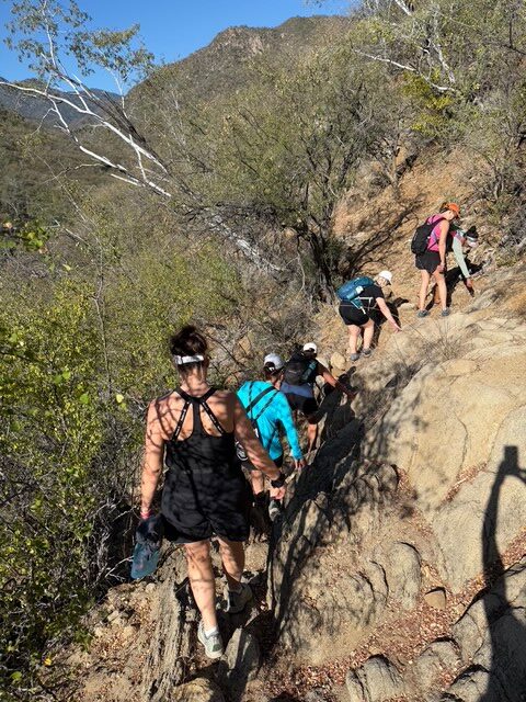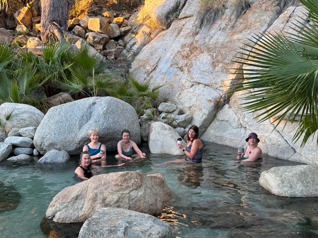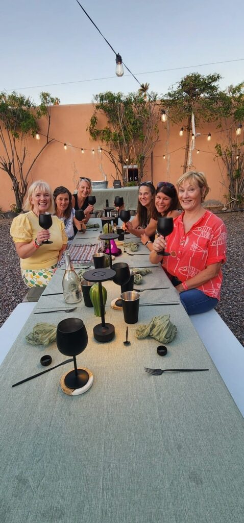 We woke to roosters at sunrise, but a welcome alarm clock to catch a glimpse of the full moon as it dipped the horizon. We discovered that evenings in the Baja can be cool, especially if there is a mountain breeze, so the sleeping bags that appeared overkill initially were welcome – even to a bunch of naturally overheated women north of 50! But it gave us another reason to seek out a morning hot springs soak before breakfast.