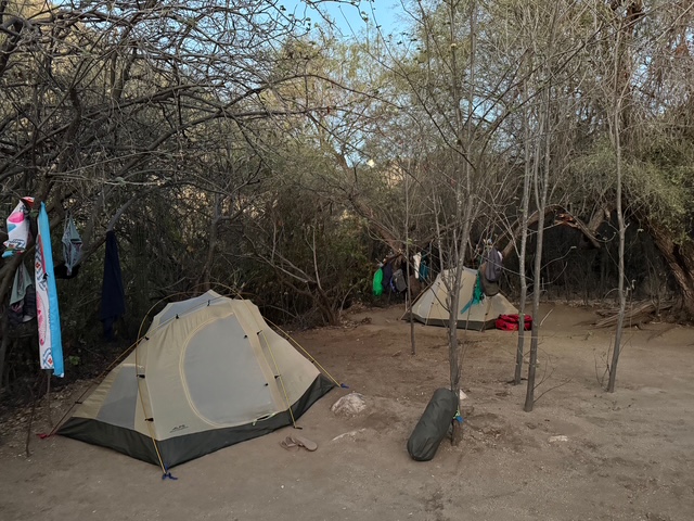 After the hike back out we drove to our campsite for the night, in Santa Rita Canyon, after a stop at Rancho Eco Lodge Sol de Mayo for lunch.