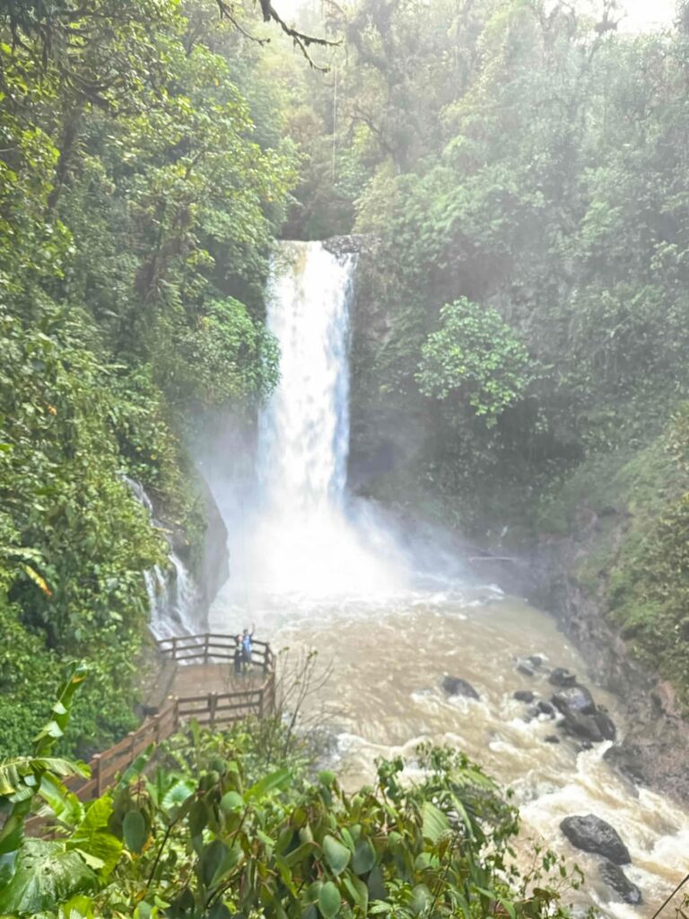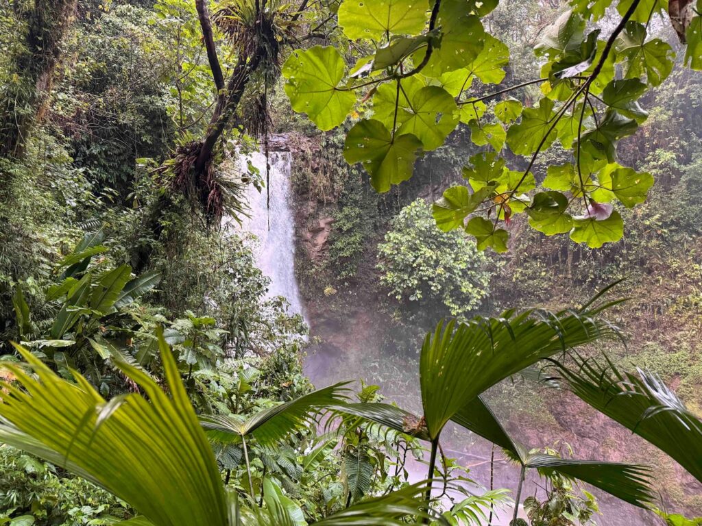 “Content that we’d satisfied all wildlife learning opportunities, and checking that nobody was still rehearing their keynote on the monkeys, our group headed out through the lush trails leading to the five waterfalls at La Paz Waterfall Gardens.“