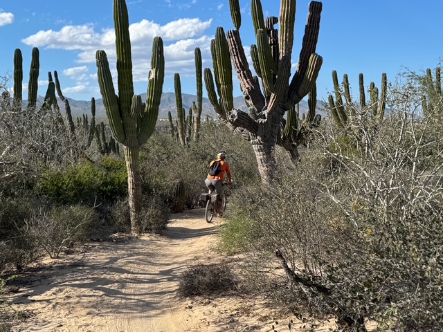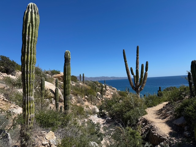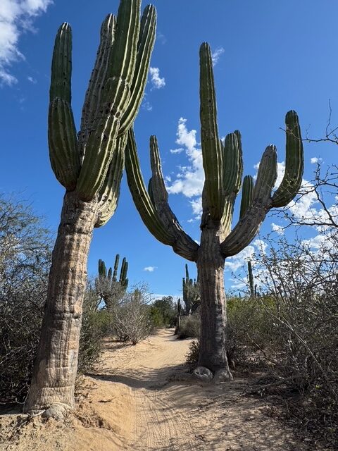 I found the Cardon Cactus Forest south of town fascinating. Mostly because cactus of any type are quite foreign to this Pacific North West rainforest native, but also because it was flat out cool to walk amongst Elephant Cactus over 200 years old. The Cardon Corridor is a 6.5km trail through the cactus forest. Quail Trail is 3.3km. The trail is used by walkers and mountain bikers, with some interpretive signs along the way. Be mindful if a trail is signed “one-way” as a bike path, since cyclists can come up on you quickly. The trails through the Cardon Cactus Forest are flat, and classified as easy. Get the Trail Forks app, to explore all trails in the La Ventana area. It will help you locate trail options and track yourself within the Cardon Cactus Forest.