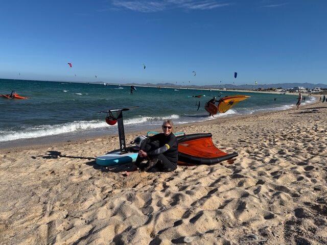 Is La Ventana good for beginners at wing foiling? Yes. Winds are predictably good Nov-Mar, and being located on the eastern side of the Baja, means ocean waves are minimal. La Ventana beach is in a C-shape, so even if beginners get blown down, there is a beach to catch them. There are several companies offering lessons and rentals for beginners in La Ventana.