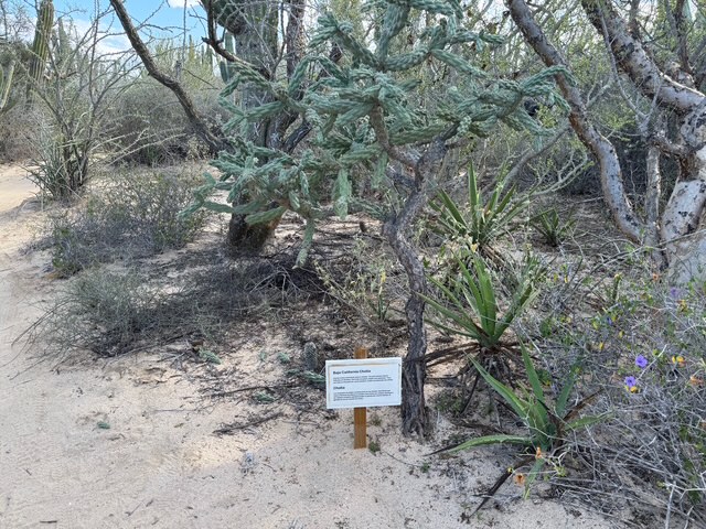 Baja California Cholla: Wrens nest in this cactus, and it gets pink flowers which bloom Feb-Oct. The fruit from this cactus is green and can stay on the plant for many seasons.