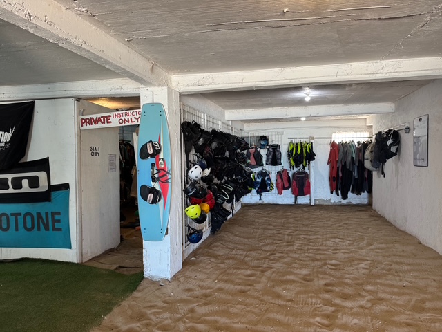 A few folks I spoke to said the airline rates to carry gear were reasonable, and a couple mentioned no additional charge – hard to believe in 2026, so be sure to ask! But the rental option also allows you to try new gear, and to switch sails during the day if you wish. It’s an excellent option for trying out new sails, boards and different brands. For example, I use an F-one wing with hand hold hoops at home. I was able to try a Duotone wing – once with a solid bar hold, and another time with two bar holds. (For the record I preferred the solid bar hold, because it felt more like a windsurfing set up, which was very familiar)