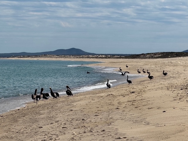 Mornings are calm in the Sea of Cortez off La Ventana. That is because the area is on the eastern shore of the Baja, not open to Pacific coast ocean tidal waves. And in the morning it is yet to be stirred up with the northern wind which usually arrives around noon, producing some waves. A sunrise paddle and morning glide along the shore will likely be shared with pelicans, not other people.