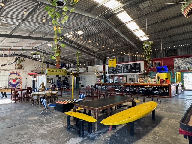 ChangoMango (amazing healthy smoothies for breakfast, acai bowls and fresh fish or shrimp tacos lunch and dinner, fun open outdoor bar) I stayed at ChangoMango, and can attest that half of town showed up to the bar and restaurant to watch the Superbowl, but many who were not guests also returned nightly for the food and drinks. ChangoMango is right across the street from Baja Joes. The open bar and dining area is at the entrance, just behind the rock wall.