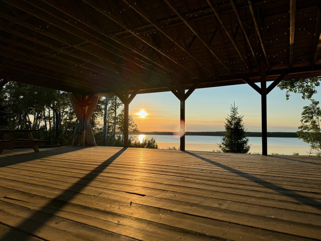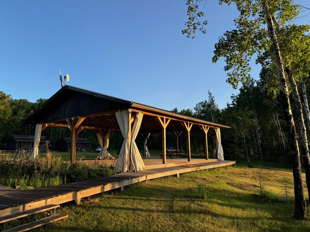 Water’s Edge Eco Lodge was a more curated recreation experience than kâniyâsihk Culture Camp. The property is set up as a resort, to host summer visitors, families, and special events. The outdoor covered pavilion down by the water makes the location fabulous for weddings.